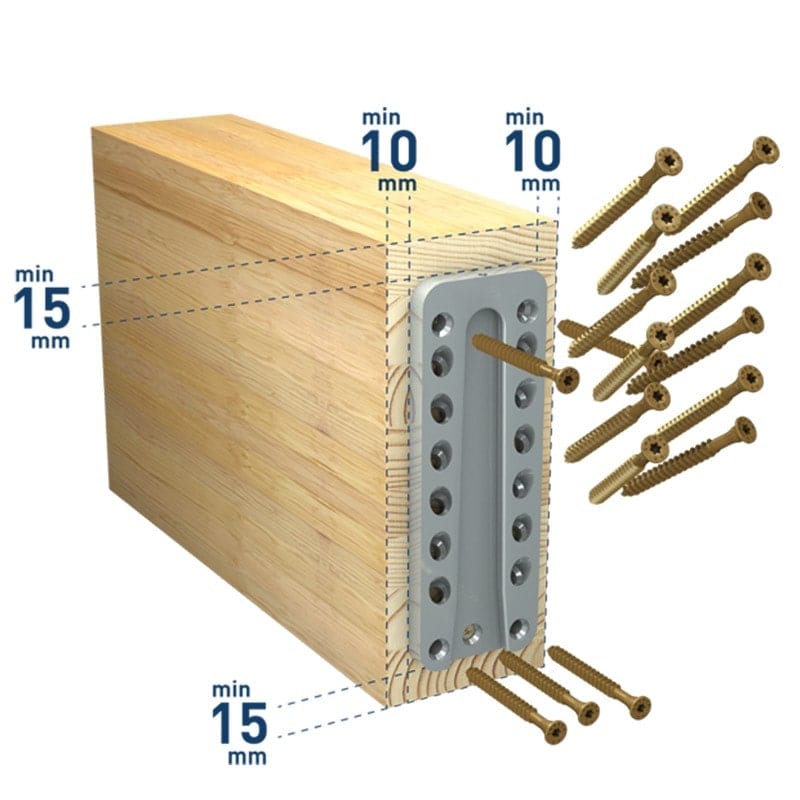 Je nach Verbinder-Typ sind die entsprechenden Spezial-Schrauben laut Zulassung ETA-12/0067 zu verwenden, um die angegebenen charakteristischen Tragfähigkeitswerte gewährleisten zu können.