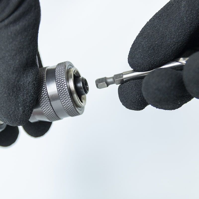 • Mit werkzeugloser Schnellwechsel-Aufnahme