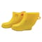 Das Gummiband, das an zwei Punkten an der Rückseite des Überstiefels angebracht ist, wird an einem profilierten Knopf an der Vorderseite befestigt