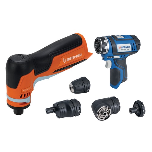 Akkubohrschrauber mit 4 wechselbaren Aufsätzen & akkubetriebener 90° Geradschlei BACDCH & BACDG BL, BERA® CLIC+