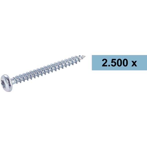 2500 Stück Spanplattenschraube Vollgewinde Pan Head Tx20, 4x40, verzinkt