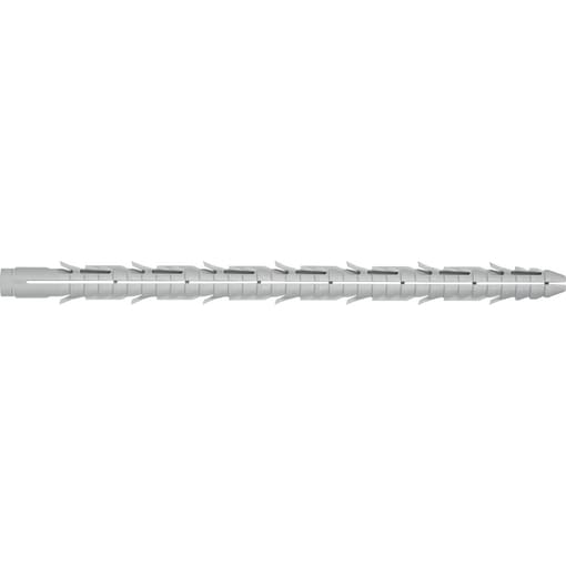 Vollständig umlaufende Querrillen über die gesamte Spreizlänge ermöglichen einen Kraft- und Formschluss im Baustoff
